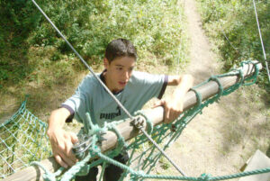 Matin et Après-midi : Parcours aventure dans les arbres avec tyroliennes et ponts de singe.